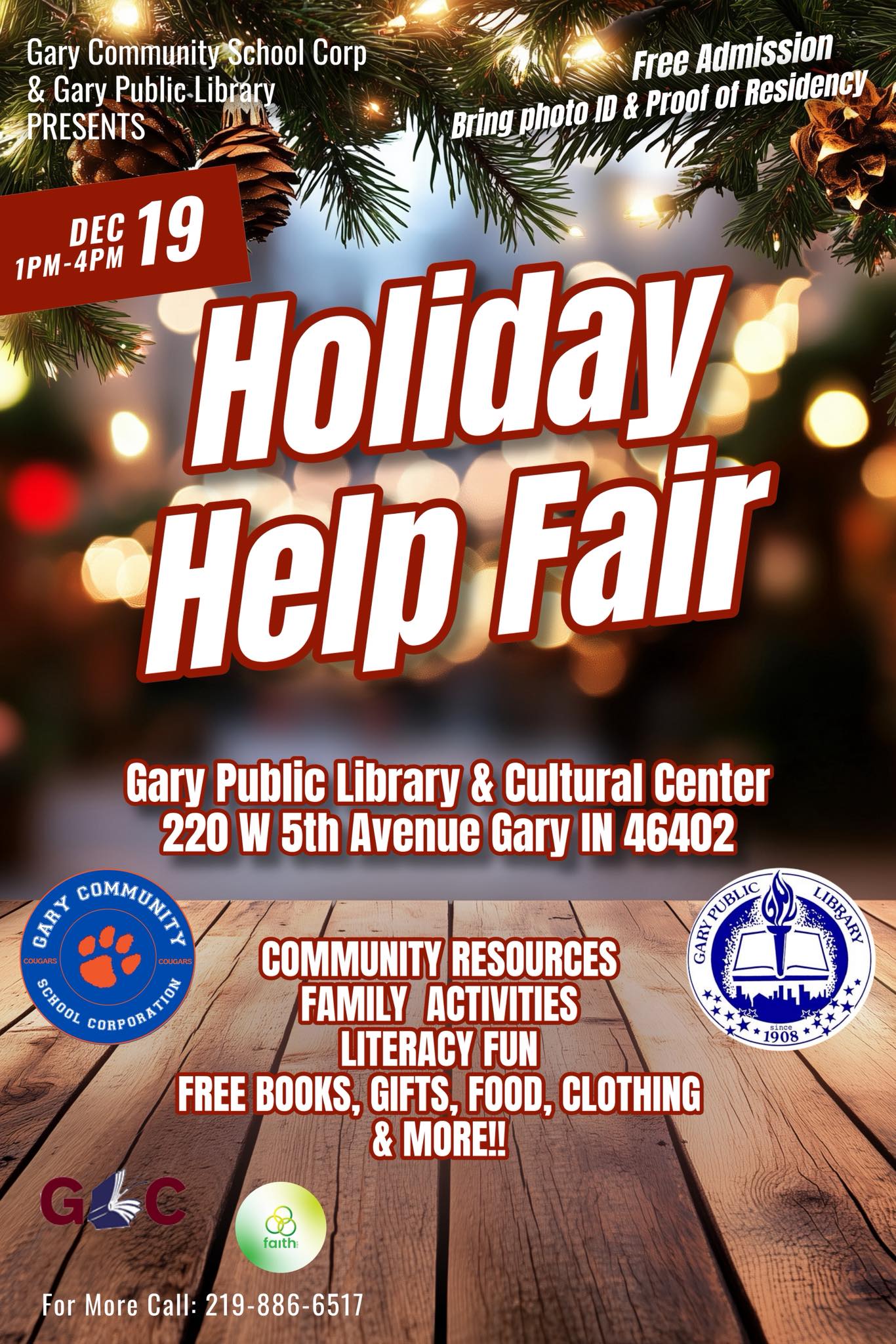 The Gary Community School Corporation and the Gary Public Library are hosting a Holiday Resource Event on December 19, 2025 to support families throughout the winter break.