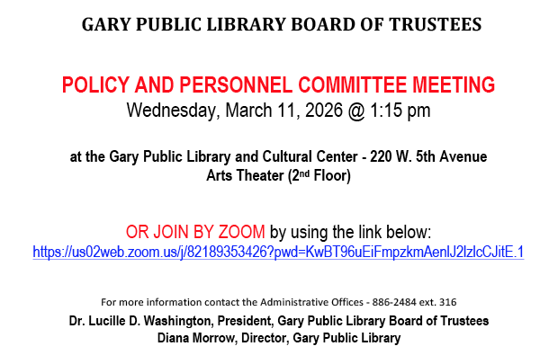 Gary Public Library Gary, Indiana 219.886.2484